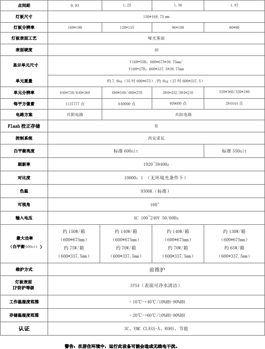 COB1.25面板產品參數及安裝指導